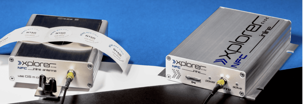 NFC Xplorer inline is a quality assurance test tool that additionally allows encoding of NFC and HF RFID tags and labels. The device is setup to support the maximum speed allowed by the protocol and the tag chip.The device consists of 2 elements, the NFC Xplorer Inline itself and a test antenna (set). A Secure Access Module, the MIFARE SAM AV3, is provided optionally.